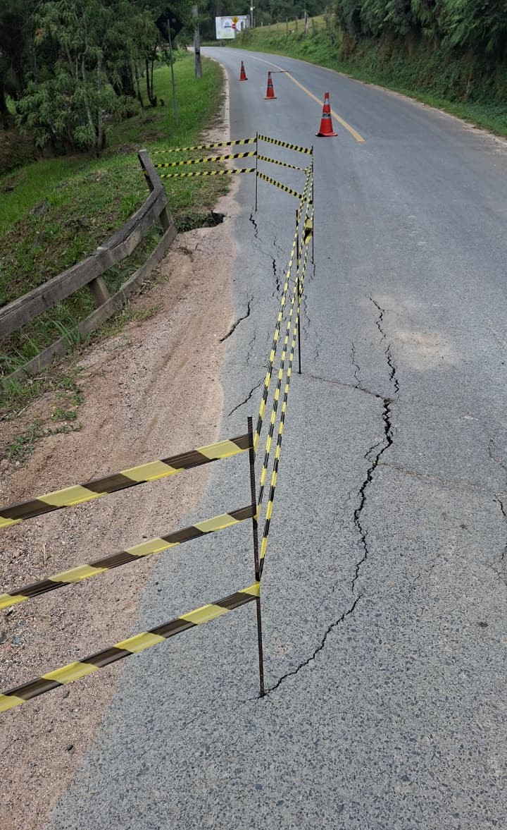O tráfego de veículos está em meia pista na ponte da rodovia José Pedro das Neves, no bairro Alto Rio Molha, em Urussanga, nas proximidades do Centro de Equitação Nunes (apenas ponto de referência). O local foi devidamente sinalizado pelo Departamento Municipal de Trânsito (Demutran) para evitar acidentes, após a identificação de um desnível na pista.
